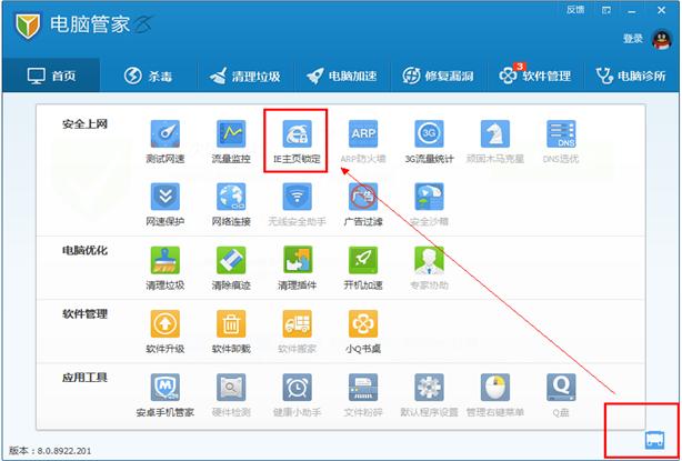 1,打開電腦管家,點擊如下面的圖標,IE主頁鎖定