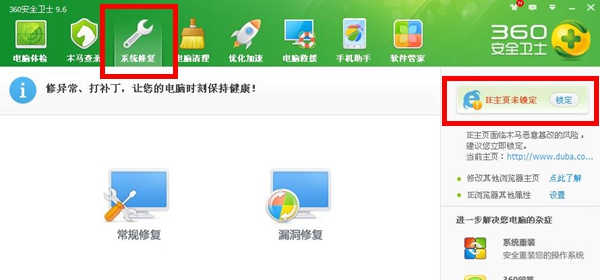 1,打開360安全衛士界面,我們切換到系統修復界面