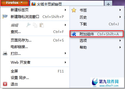點擊左上角的“firefox”按鈕,在彈出的菜單中點擊“附加組件”