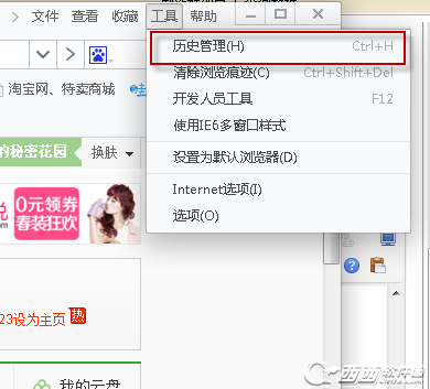 2、找到工具欄選擇歷史管理
