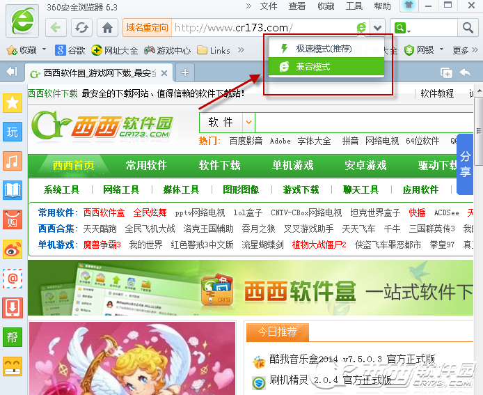3、我們這個時候選擇兼容模式即可。現在的瀏覽器就是兼容模式了。