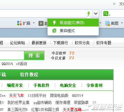 2、打開瀏覽器之后,點擊地址欄右邊的一個圖標,如下圖,會自動顯示兩種模式,分別為高速模式和兼容模式。