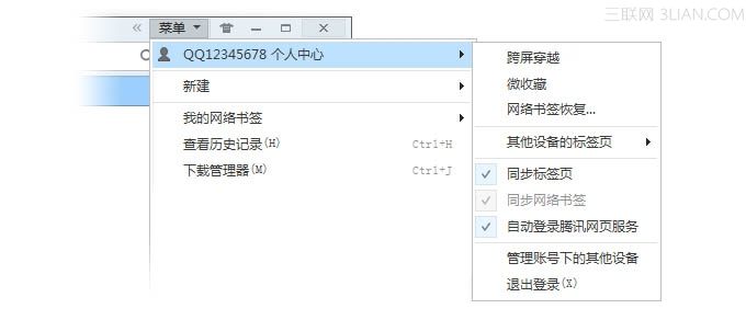 QQ瀏覽器7的登錄按鈕的位置如下圖: