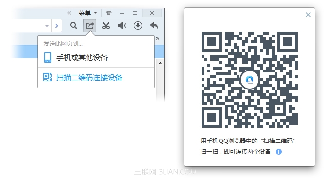 QQ瀏覽器7推出新功能“跨屏穿越”,可以幫大家將網頁發送到任何其他設備:手機、iPad或另外一臺電腦。