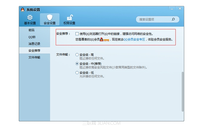 如果您安裝是QQ2013版本,可以在主菜單-系統(tǒng)設(shè)置-安全設(shè)置-安全推薦 中取消相應(yīng)的勾選: