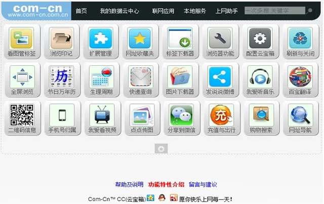 各種精彩應(yīng)用,支持云同步去看圖管理標(biāo)簽,還原瀏覽標(biāo)簽集,擴(kuò)展管理,翻頁翻面,批量下載,云購物,傳圖片,聽音樂,看視頻,發(fā)說說與微博,萬年歷,網(wǎng)址收藏,查快遞,查發(fā)票, 網(wǎng)絡(luò)搜索,瀏覽器功能快捷導(dǎo)航,網(wǎng)頁個性化配置提高上網(wǎng)操作效率及互聯(lián)體驗
