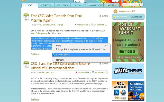 為選擇文本的右鍵菜單增加谷歌翻譯,支持頁內(nèi)劃詞翻譯