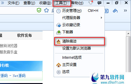 點擊右上方的“工具”菜單,在彈出的菜單欄中找到“清除痕跡”