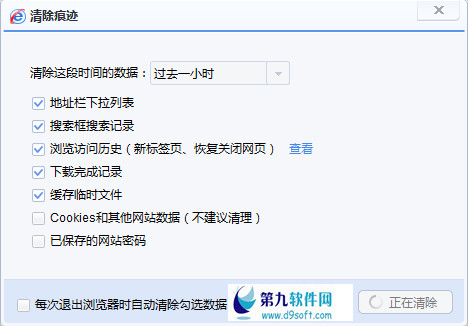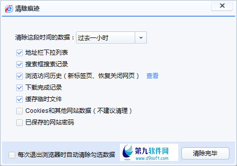 在彈出的對話框中找到“緩存臨時文件”,在前面方框內打上勾,之后點擊清除痕跡。