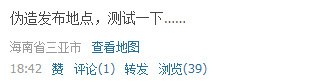經測試,騰訊微博也可以偽造發布地點,但新浪微博我嘗試了幾次均未能成功,有的網友說是發布成功了。最后看看我從三亞“天涯海角”發來的說說: