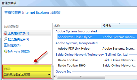 要回答這個問題,請先從管理加載項窗口左邊的“顯示”下拉框中選擇“當前已加載的加載項”。之后,右邊列出的所有加載項(IE 8 必備的加載項并不顯示在此列)都可以禁用。退一步說,禁用之后,即使某些加載項將來需用到,我們還可以再啟用么。]