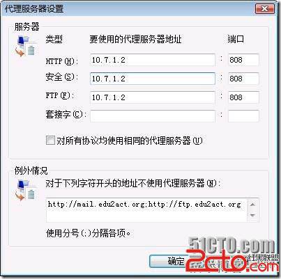 5. 訪問企業內部網站不需要使用代理,在“例外情況”中,輸入那些直接訪問的網址。