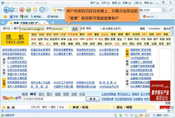 如果保存了,那么在下一次訪問該網站時,瀏覽器會自動幫您填寫上這次保存的用戶名和密碼,您只需要點擊一次“登錄”按鈕即可登錄賬戶,如下圖所示。