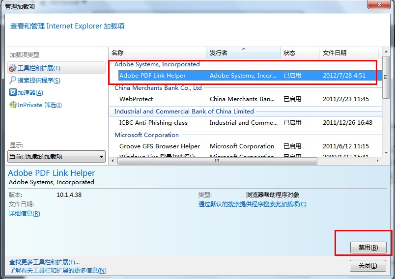 點擊程序--管理加載項--點開后可以禁用相應的加載項(如下圖):