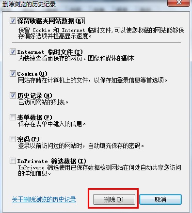 1. 打開intelnet選項,找到瀏覽歷史記錄,點擊刪除(如下圖):