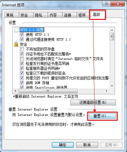 5. 單擊“高級”選項卡,然后單擊“重置”;