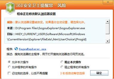 注:如果您電腦上安裝了安全防護軟件,在設置時可能會彈出風險的提示框,您選擇“允許操作”即可,如下圖所示。
