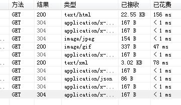 在執行刷新時,往往我們能發現很多文件的下載結果都是304,這說明這個網頁之前在瀏覽器中已經打開并緩存了相關的文件,經過和服務器的聯系,服務器響應說這個文件沒有經過更改,可以直接使用緩存的版本。因此,這些文件實際上都是通過瀏覽器緩存直接讀取使用的,在刷新操作中并沒有經過重新下載,并且這些文件的加載時間都很小,小于1毫秒:
