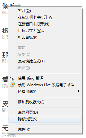 3. 想看一下沒有登錄時,網站的界面,但又不想退出登錄,這時在網站空白處,點右鍵 “隱私瀏覽”;