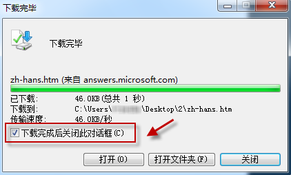 以前在IE瀏覽器中右鍵單擊下載鏈接,在選擇“另存為”即可對(duì)文件進(jìn)行下載,當(dāng)下載完成后會(huì)彈出一個(gè)提示窗口,可以選擇"打開(kāi)"、“打開(kāi)文件夾”和“關(guān)閉”。