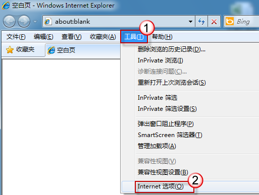 對(duì)于 IE7/IE8, 單擊“工具”-“Internet 選項(xiàng)”。