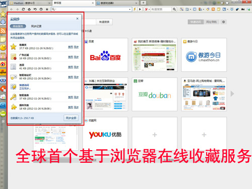 2005年,傲游推出全球首個基于瀏覽器在線收藏服務,開創了全球瀏覽器行業云服務先河。隨后,傲游瀏覽器便創造性的將帳戶系統融入瀏覽器中。近幾年,帳戶系統、在線收藏、傲游記事本等一系列基于在線服務的應用被傲游研發出來,并且逐步為全球同行業者接受和追隨。