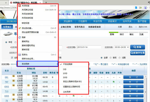 發現沒有余票了怎么辦?不要火急火燎,那就果斷的上網“刷票”吧。傲游云瀏覽器“自動刷新”功能讓你自行設置刷新速度,不讓任何一張票成為落網之魚。