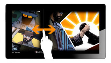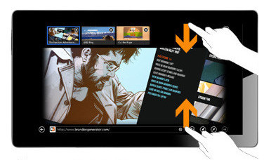 用手指由屏幕頂部向下滑動,或是由屏幕底部向上滑動,即可調出IE10的常用菜單欄。