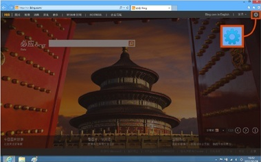 更多的瀏覽器設(shè)置可以在桌面版 IE10 中進行,它的位置還和原來一樣,在瀏覽器右上角的設(shè)置上按鈕中。