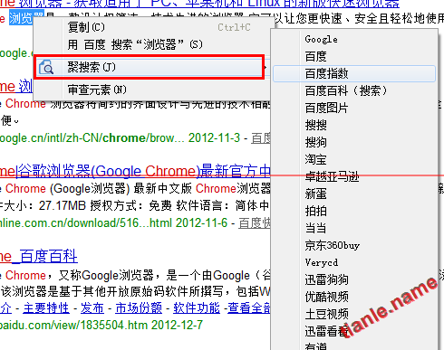 我們每天都需要獲取大量的信息,而絕大多數的獲取方式都是通過搜索引擎,所以瀏覽器能否實現快速高效的搜索就顯得比較重要了,現在的瀏覽器大多數都自帶了快捷搜索框,卻沒有辦法實現劃詞搜索、自定義搜索引擎這些功能,而chrome作為一款主流瀏覽器怎么能缺了這些功能呢?下面推薦一款chrome 的搜索增強插件-聚搜索 for Chrome 6 and higher version,有了這個插件會是你的搜索有更高的效率。