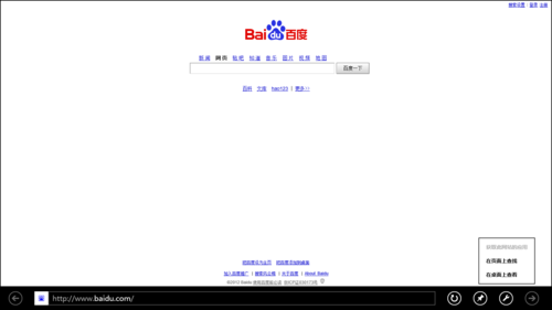 Win 8 界面版 IE10風格是“無加載項”體驗,即沒有工具欄和加載項。但無任何加載意味在更加快速簡潔的同時不支持Flash 格式(也不再支持第三方 ActiveX 控件),目前對于Flash網頁及需要其他加載項網頁的解決方案是點擊右下角的“在桌面版查看”,然后跳轉到支持Flash的桌面版IE10部分去查看。