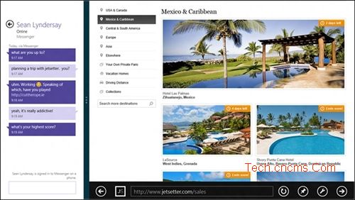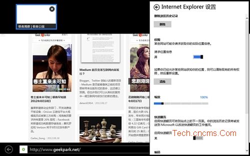 Windows 8 Style IE10除了獨立瀏覽網頁外還可以以貼靠的方式與Windows 8 Style應用配合,并將瀏覽器內的鏈接與Windows 8 Style應用共享。
