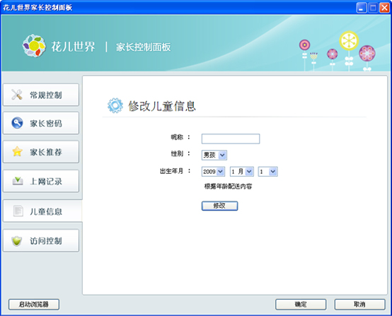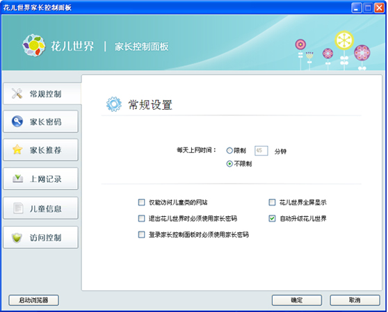 分為六個頻道:常規控制、家長密碼、家長推薦和上網記錄。