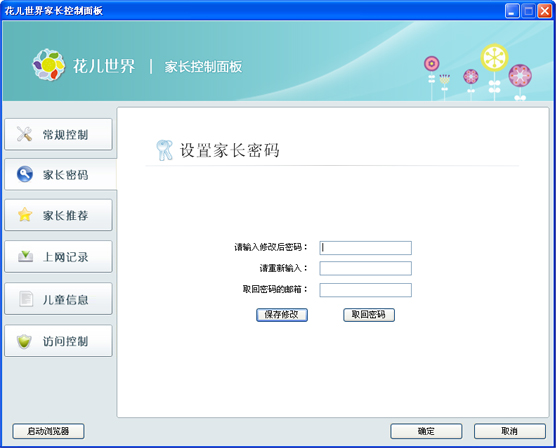 您可以設置或修改家長密碼。家長密碼是控制軟件的鑰匙,請您妥善保管。