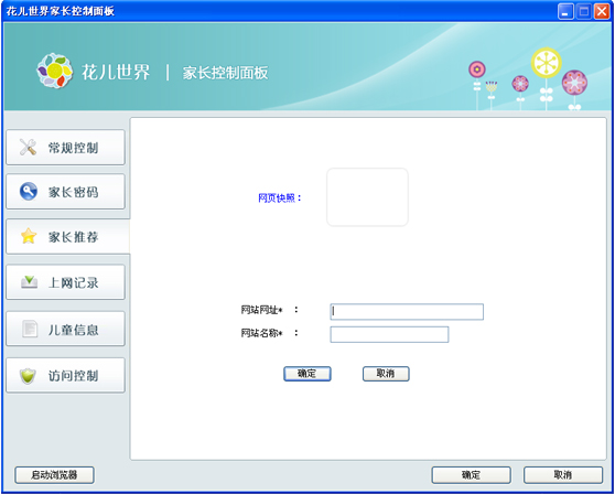 您可以把適合孩子的網站推薦給孩子,您推薦的網站,將會出現在瀏覽器首頁的家長推薦欄目中。