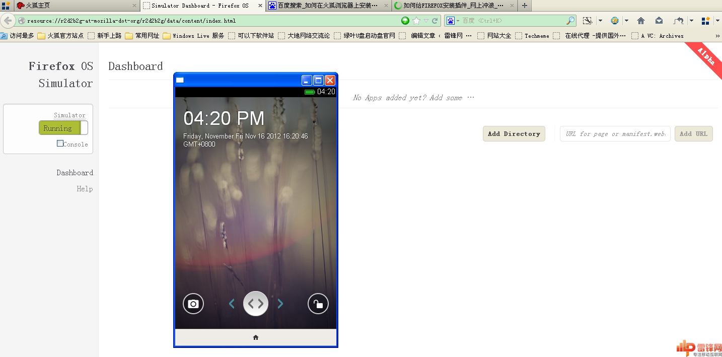 Mozilla推出的Firefox瀏覽器插件r2d2b2g現(xiàn)在已經(jīng)變成一個(gè)Firefox OS模擬器,方便開(kāi)發(fā)者和普通用戶在桌面瀏覽器上體驗(yàn)Firefox OS。在其官方博客中,Mozilla表示希望該模擬器插件能更好地幫助開(kāi)發(fā)者輕松創(chuàng)建Firefox OS的應(yīng)用。