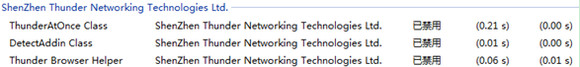 因為安裝的迅雷軟件不同,可能出現不同的加載項,最多會有4項,詳見下圖,把這4項都禁用后,能夠有效地避免大多數崩潰問題。