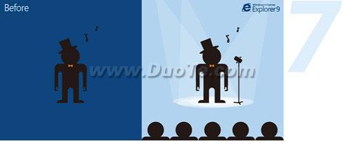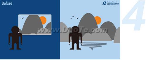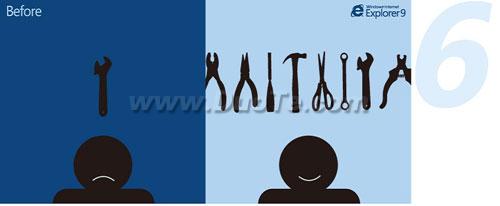 IE9 帶來全新用戶界面 ——簡單、清晰、有效,盡可能簡化瀏覽器的外觀元素和操作步驟——希望用戶能夠最大限度的“忽略”IE9 的“存在”,而將注意力全部沉浸在精彩的網絡內容當中。