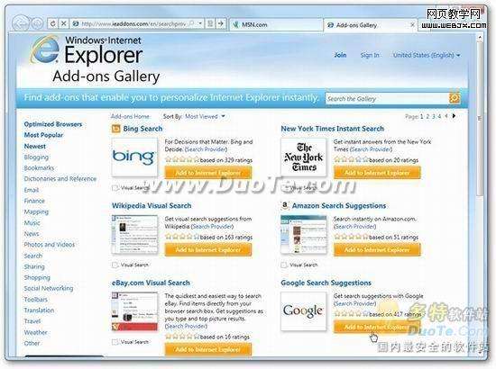 你就會來到 IE Add-ons Gallery,在角落里面找到 Google Search Suggestions,點擊 Add to Internet Explorer。