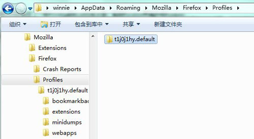 2、打開Firefox的個人數據文件夾;位置在C:Users用戶名AppDataRoamingMozillaFirefoxrofiles,里面有個t1j0j1hy.default的文件夾(注意,前面的字符每個人都會不同),雙擊進入。