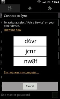 在火狐移動版上選擇連接同步,系統會隨機產生三個代碼,如下圖: