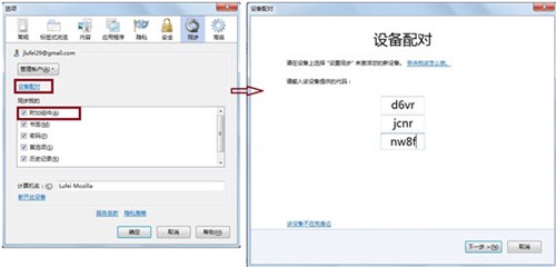只需要將這三個代碼輸入到桌面火狐瀏覽器的同步設置中的“設備配對”中,就可以馬上將這兩臺設備的數據完美同步了。