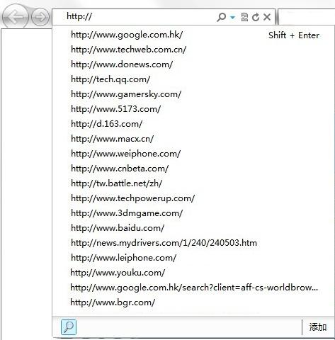在此前的IE版本或者其他瀏覽器中,點擊地址欄下拉框可以看到很多條瀏覽過的網址記錄,這樣在下次需要瀏覽的時候查找起來很是方便。不過很多習慣使用IE的用戶發現,IE9中最多只能顯示5-7條網址記錄,更多的瀏覽記錄需要到歷史記錄中進行查找,比較麻煩。事實上,只要在IE9中做一個小設置就能看到更多網址條目,這樣就方便多了。