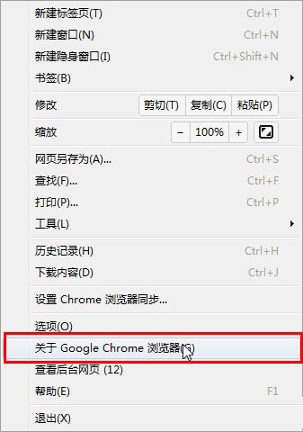 如果你不希望馬上重啟,也可以點擊“稍后重啟”,這樣就不會打斷當前的瀏覽了,Chrome會在下次啟動時再進行更新。如果在扳手圖標上看不到小箭頭顯示,也可以點擊扳手圖標,選擇“關于Google Chrome瀏覽器”。