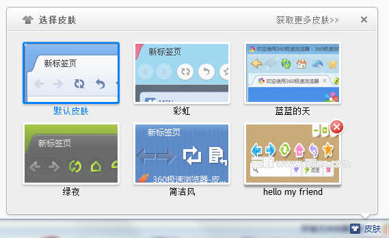 為360極速瀏覽器添加有趣的皮膚主題可美化瀏覽器。皮膚會出現在瀏覽器邊框周圍,同時成為"新標簽頁"頁面的背景。