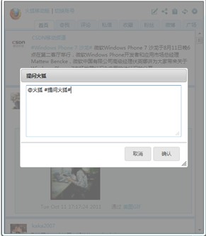 在使用火狐瀏覽器的時候,遇到問題怎么辦?去哪里尋求幫助呢?很多朋友會告訴你,@火狐 新浪微博。有了這個微博助手,只需要點擊右上角的提問火狐圖標,就可以直接發微博提問火狐,并且自動@火狐,火狐微博的運營人員會幫大家答疑解惑,或是將問題發布到火狐社區。