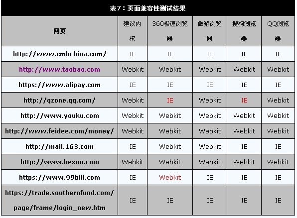 從測試結果可以看出,QQ瀏覽器在此項測試中順利通過,360極速瀏覽器和傲游瀏覽器則因未按照建議內核打開網頁。根據測試結果來看,搜狗瀏覽器和傲游瀏覽器均有一項未通過,而360極速瀏覽器則有三項未通過。