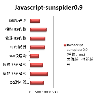 Firefox曾經憑借其出色的Javascript執行效率獲得了開發者的青睞,從那以后,對Javascript引擎的優化成為另一重點。而隨著云計算的日益普及,在線應用的功能正在逐步向桌面終端軟件靠近,由此帶來的執行效率則關系著在線應用的成敗,因此我們分別對Javascript執行效率與頁面負載能力進行測試,測試項目包括Javascript-sunspider0.9、Javascript-V8、Javascript- speed_battle、javascript-sunspider0.9.1以及頁面負載測試PeaceKeeper。