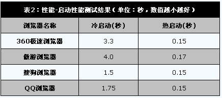 使用“PassMark AppTimer”作為測試工具,以打開about:blank頁面為準。每個瀏覽器測試3次,每組測試前清空預讀數據,取平均值計為最終成績,最終結果如表2: