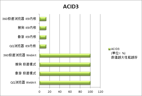 Web標準兼容性測試的重點在于了解瀏覽器對標準支持的程度與執行效率,其中支持程度由核心決定,而執行效率則是本項考察的重點,體現了不同瀏覽器的優化效率。